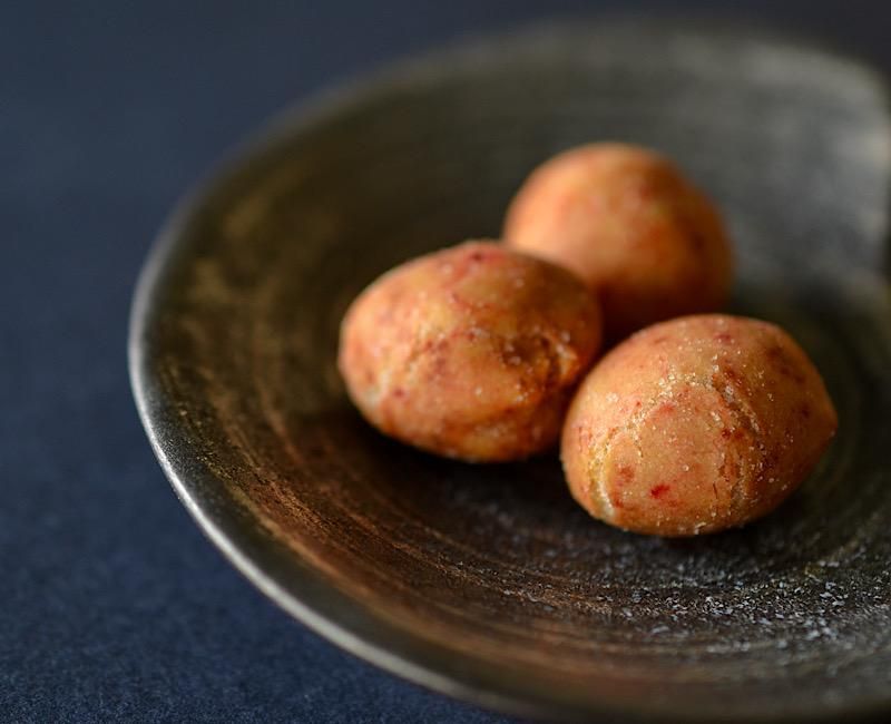 生海老を巻き込んだ生地は、じっくり丁寧に煎る事で、香ばしく。